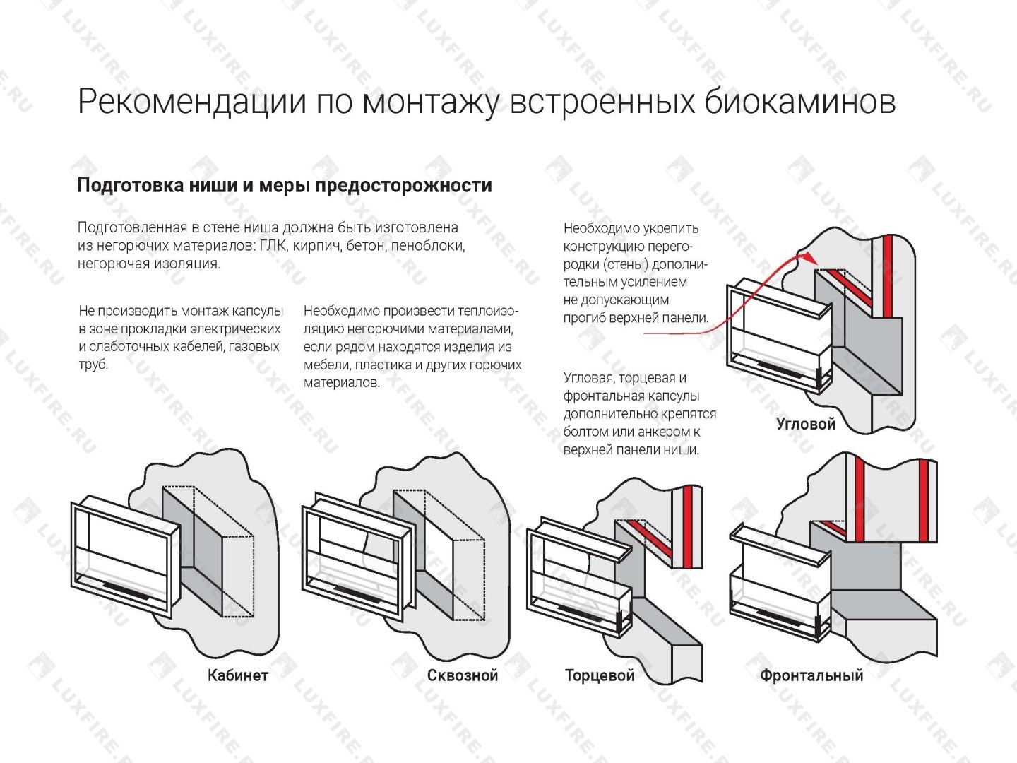 Представляет собой сборную металлическую конструкцию класса S, способную создать полуоткрытое безопасное пространство для огня c топливным блоком Lux Fire 500 S ограниченную закаленным стеклом с трех сторон в комнатах от 18 м2